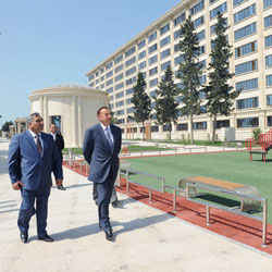 President Ilham Aliyev first watched cladding of residential buildings along the highway.