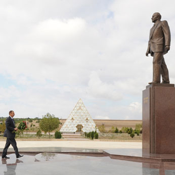 Here, the Head of State visited the monument to national leader Heydar Aliyev and laid flowers on it.