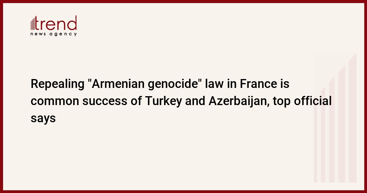 Azerbaijan welcomes repealing of a law criminalizing denial of the so-called "Armenian genocide", which was adopted by the Senate, by the Constitutional Council of France, Azerbaijani Presidential Administration Social and Political Department Chief Ali Hasanov told Trend.
