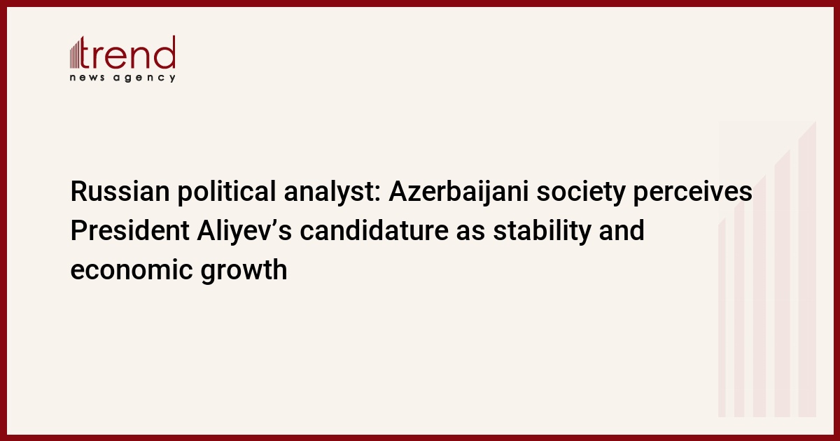 "Azerbaijani society perceives the candidature of Azerbaijani President Ilham Aliyev as the source of stability and economic growth,' he told Trend via e-mail. "Of course, the chances of his re-election to a third term are great."