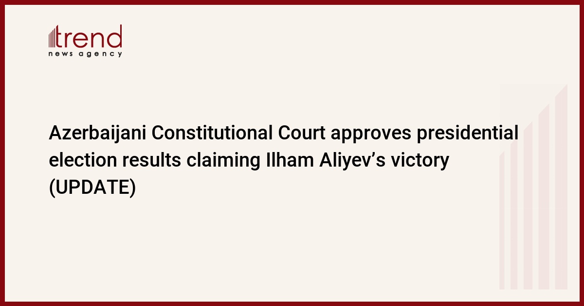 The Plenum of the Azerbaijani Constitutional Court has today approved the results of the presidential election held on October 9.