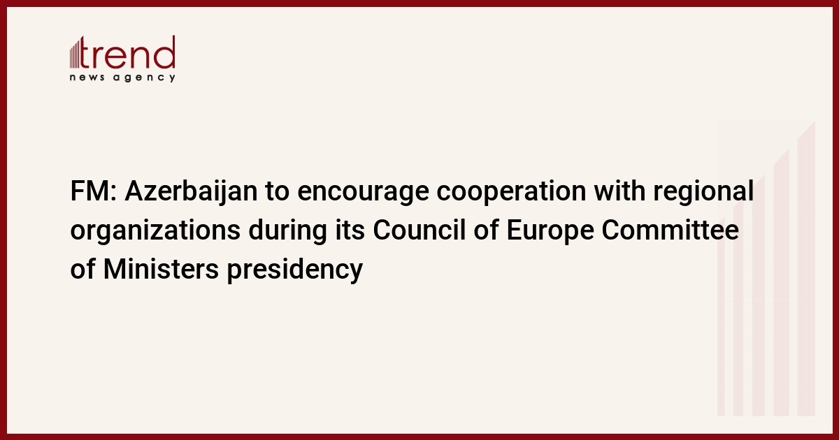 By Sabina Ahmadova - Trend: In May 2014, Azerbaijan will assume the chairmanship of the Committee of Ministers of the Council of Europe and during its presidency the country will encourage the cooperation with regional organizations, including those representing other continents, Azerbaijani Foreign Minister, Elmar Mammadyarov said on November 7.