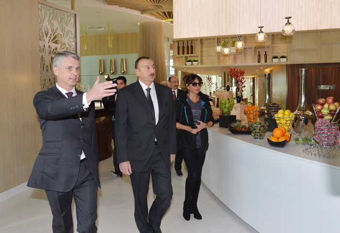 President Ilham Aliyev cut a ribbon symbolizing the opening of the hotel.