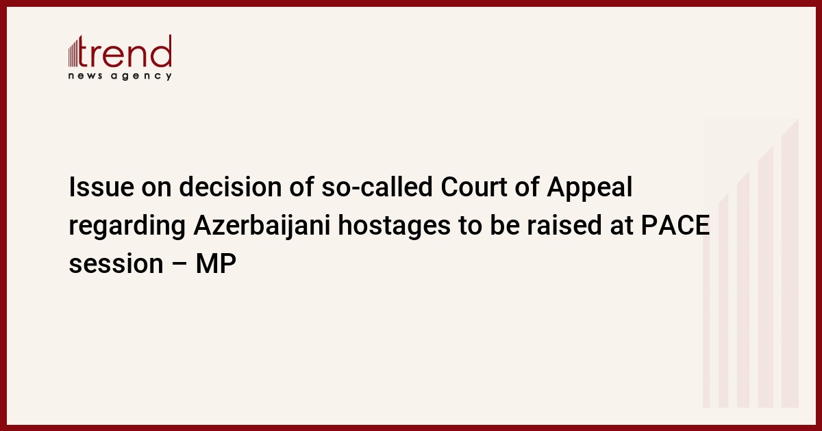 The issue on the "decision of Court of Appeal" of the so-called Nagorno Karabakh Republic regarding Azerbaijani hostages Dilgam Asgarov and Shahbaz Guliyev will be raised at the spring session of the Parliamentary Assembly of the Council of Europe (PACE), which will be held April 20-24 in Strasbourg, a member of the Azerbaijani delegation to PACE Rovshan Rzayev told Trend Mar.16.