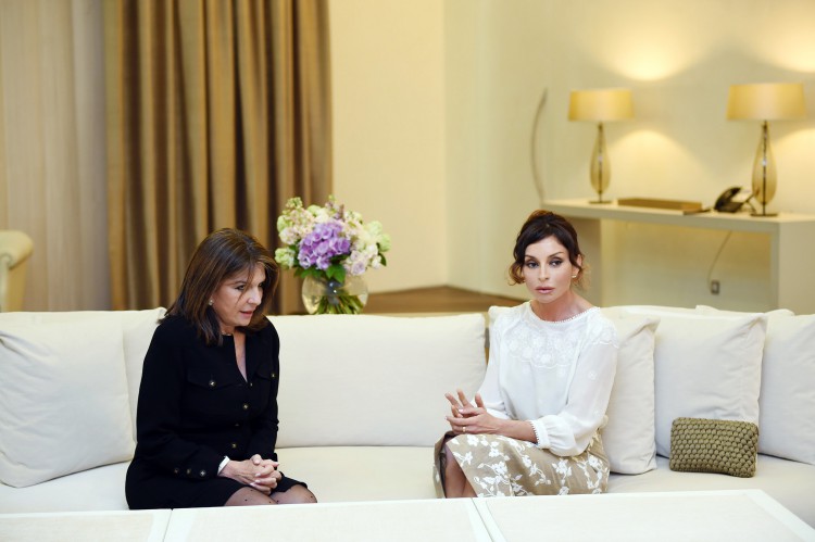 Azerbaijan`s first lady, head of the Azerbaijan-France interparliamentary friendship group at Milli Majlis Mehriban Aliyeva met with member of the French Senate Nathalie Goulet, who was attending the 3rd World Forum on Intercultural Dialogue in Baku on May 18.