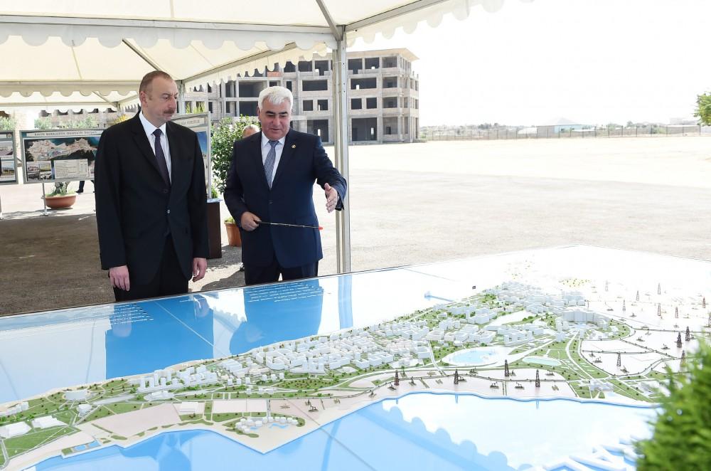 Head of the district`s Executive Authority Vasif Imanov informed President Ilham Aliyev about the general layout of the district.