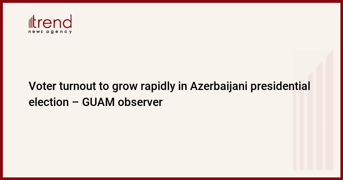 It is already obvious that the voter turnout in the presidential election in Azerbaijan will grow rapidly, Head of the Georgian delegation of the Parliamentary Assembly of the GUAM Organization for Democracy and Economic Development, Giorgi Mokhidze, told Trend April 11.