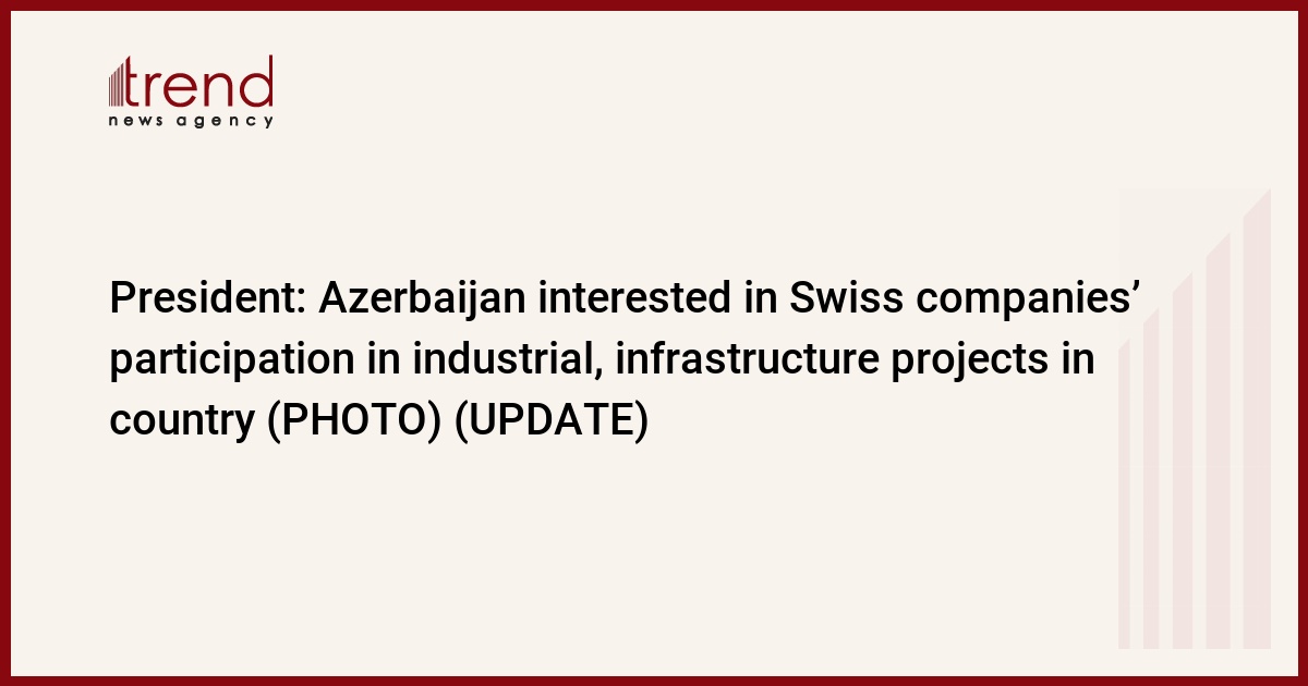 President Ilham Aliyev expressed confidence that further development of the Azerbaijani economy will be ensured in the years to come. There are plans to implement a large number of industrial and infrastructure projects in Azerbaijan, and the country is interested in the participation of Swiss companies in this work, Ilham Aliyev said.
