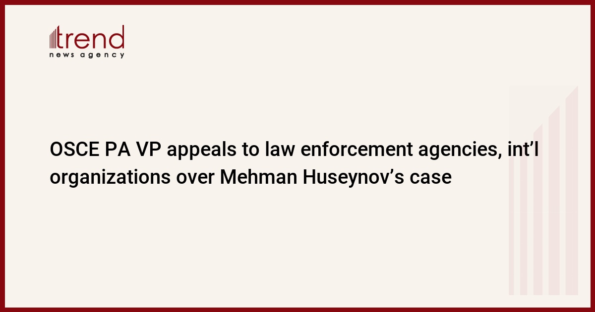 “The situation regarding Mehman Huseynov was seriously disturbing me as the Vice-President of the OSCE PA. I held discussions with the relevant bodies in order to learn the truth regarding the information, spread about Mehman Huseynov. To know the essence of the new accusation brought against him, as well as to get accurate information about his health conditions, and tried to clarify some questions.”