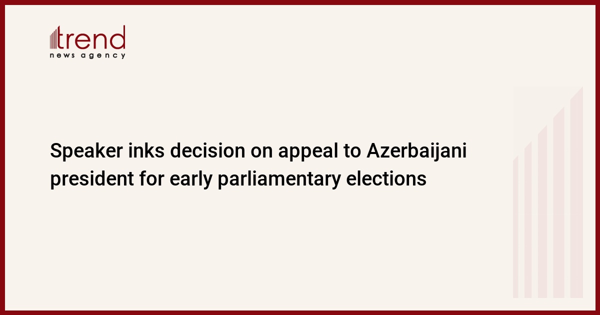 Chairman of the Azerbaijani parliament Ogtay Asadov has signed a decision to appeal to the Azerbaijani president on calling early parliamentary elections, Trend reports Dec. 2.