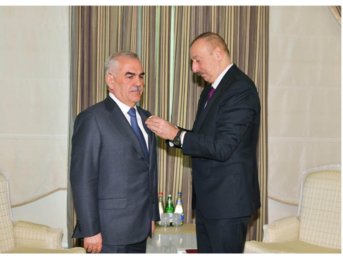 The President presented the “Sharaf” Order to Vasif Talibov.
