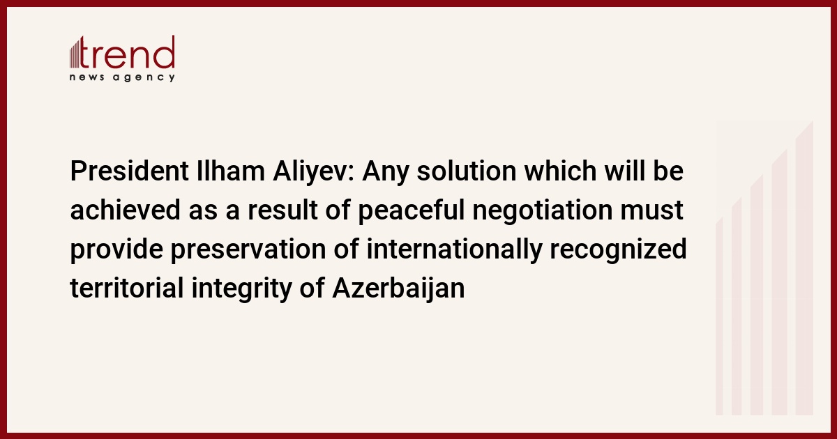 Any solution which will be achieved as a result of peaceful negotiation must provide preservation of internationally recognized territorial integrity of Azerbaijan, Azerbaijani President Ilham Aliyev said at the panel discussions on the Armenia-Azerbaijan Nagorno-Karabakh conflict held as part of the Munich Security Conference, Trend reports.