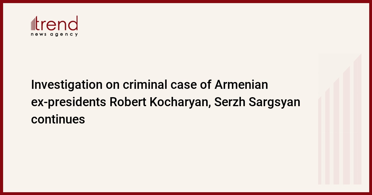 Investigation on the criminal case of Armenian former presidents Robert Kocharyan and Serzh Sargsyan continues, Head of the Special Investigation Department of the Military Prosecutor’s Office Emil Tagiyev said at an event in Baku dedicated to the 28th anniversary of the Khojaly genocide, Trend reports Feb. 26.