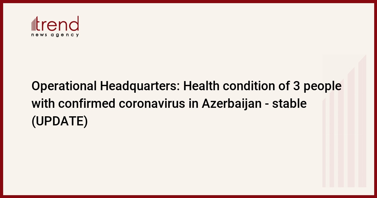 “Among those who underwent medical check-up in Azerbaijan, three people's results were positive,” the head of department added. “These individuals have been infected with coronavirus. Their condition is stable. They are under the supervision of doctors.”