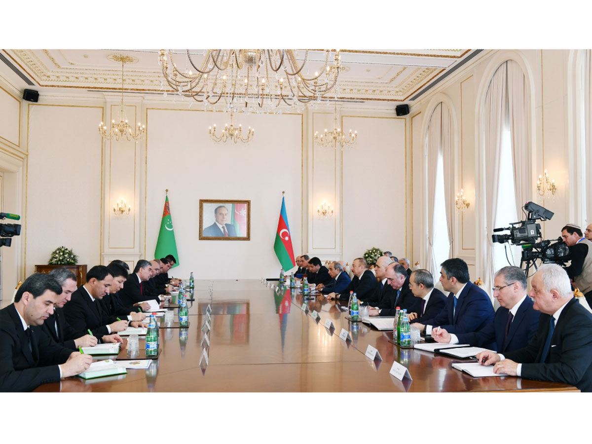 President of the Republic of Azerbaijan Ilham Aliyev and President of Turkmenistan Gurbanguly Berdimuhamedov have been joined by their delegations for a meeting in an expanded format.