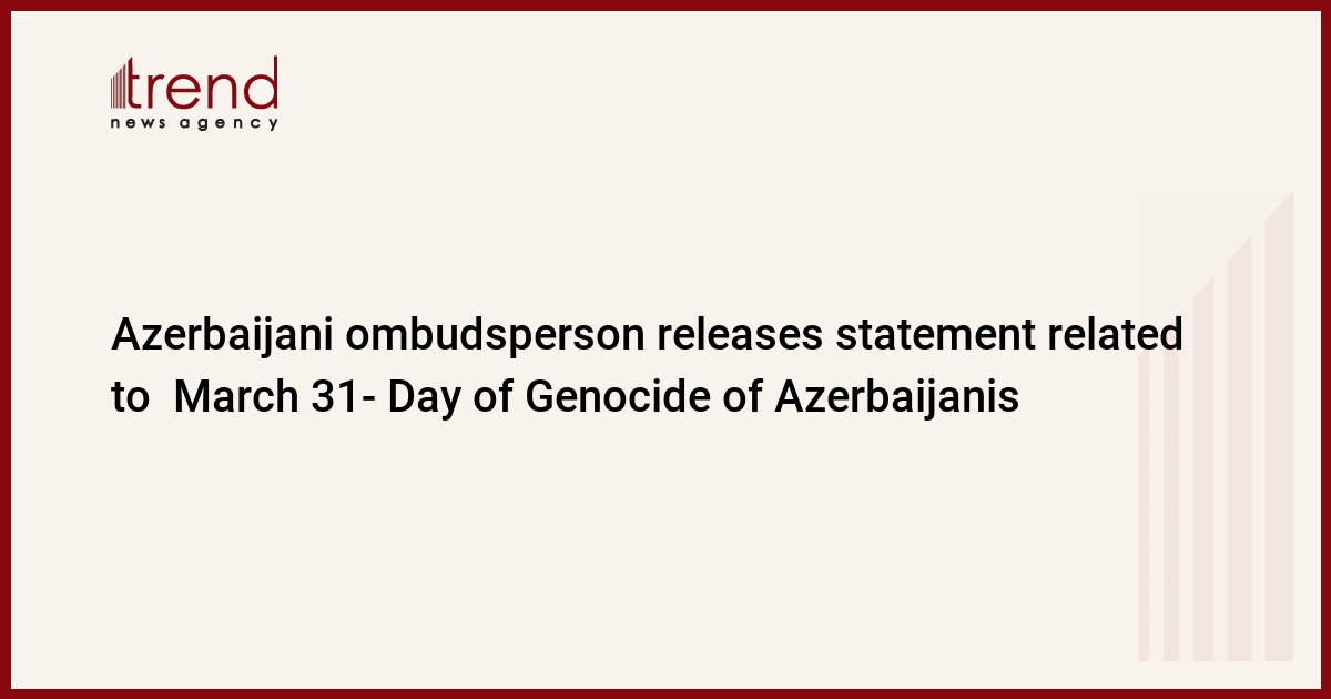 Azerbaijani Commissioner for Human Rights Sabina Aliyeva has issued a statement on March 31- Day of Genocide of Azerbaijanis.