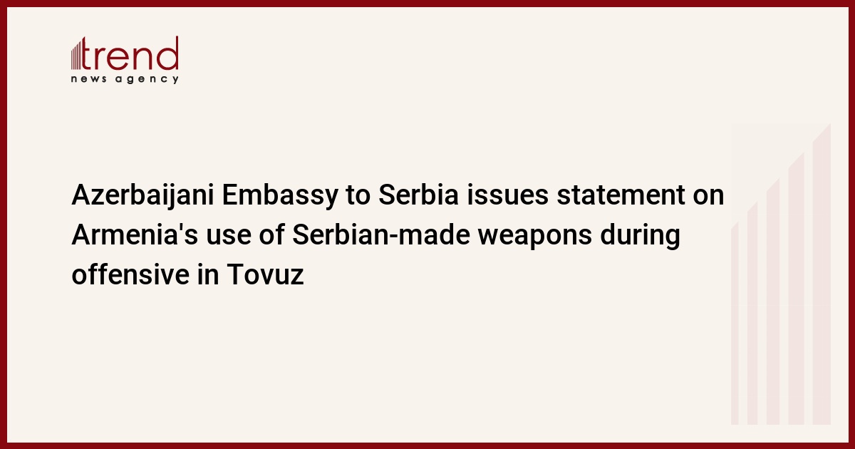 The Embassy of Azerbaijan to Serbia has issued a statement on the use of Serbian-made weapons by the Armenian armed forces during the offensive operations on the Azerbaijani-Armenian border in the direction of Azerbaijan’s Tovuz district, the embassy told Trend.
