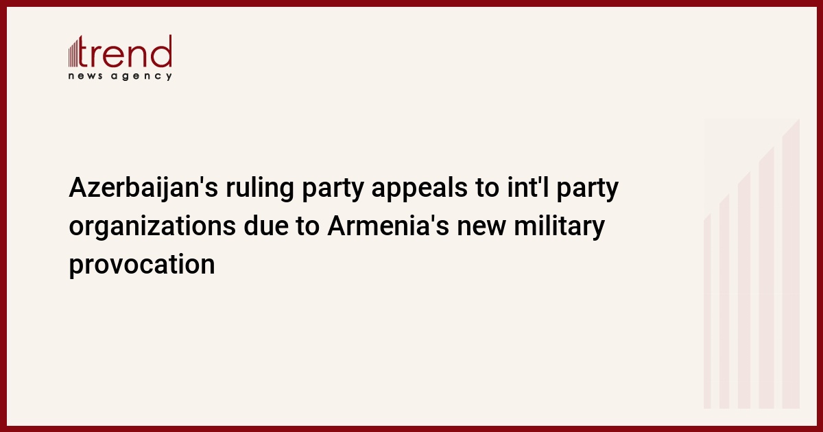The ruling New Azerbaijan Party (YAP) appealed to international party organizations and political partner parties due to the military provocation of the Armenian armed forces and the struggle of the Azerbaijani Army against the Armenian occupiers, Trend reports.