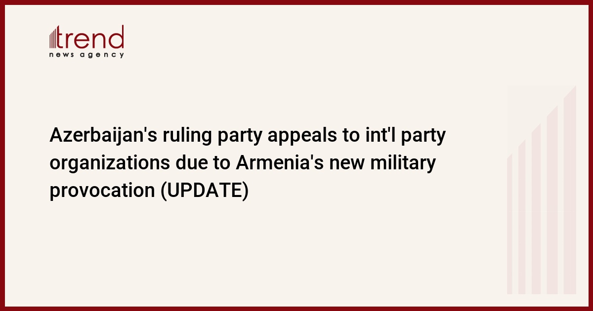 The ruling New Azerbaijan Party (YAP) appealed to international party organizations and political partner parties due to the military provocation of the Armenian armed forces and the struggle of the Azerbaijani Army against the Armenian occupiers, Trend reports.