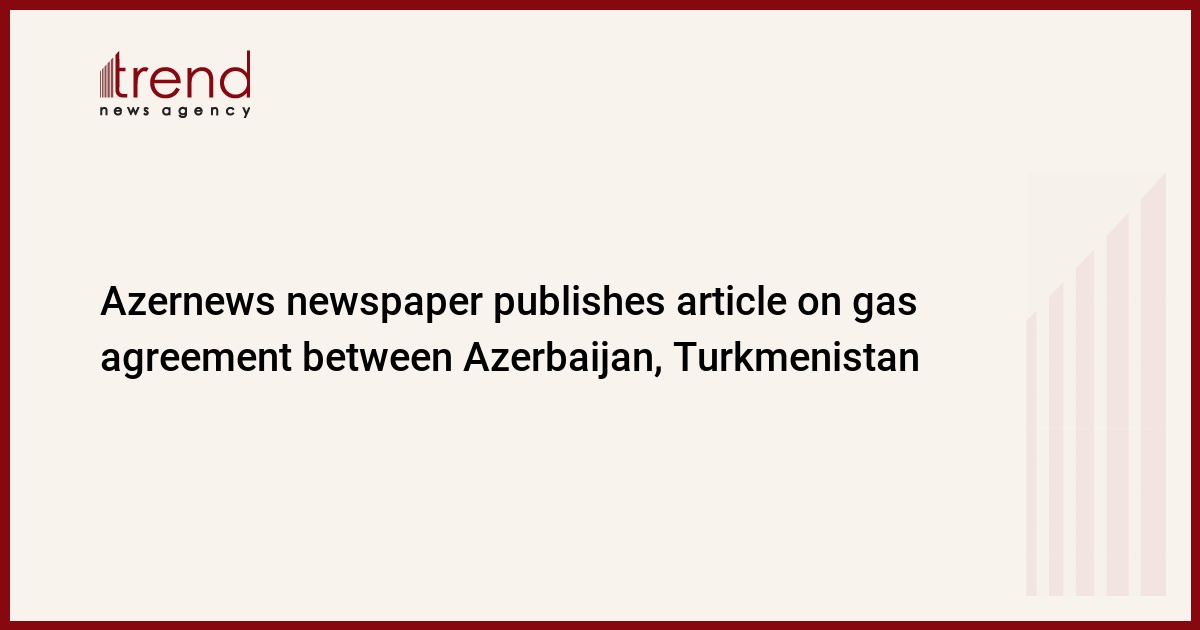 The ‘Gas Agreement between Azerbaijan and Turkmenistan - the beginning of a new era of cooperation in the Caspian’ article, published by the Azerbaijani Azernews newspaper, describes the contribution to cooperation between the two countries and the region as a whole made by the agreement signed last month on the joint development of the Dostlug field, Trend reports.