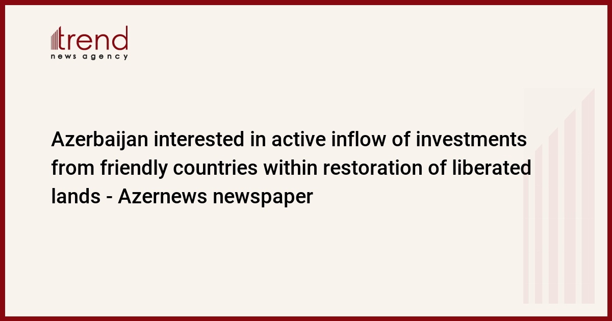 While entering the phase of post-conflict restoration, Azerbaijan is interested in an active inflow of direct investments from foreign companies from friendly countries to restore the liberated territories.