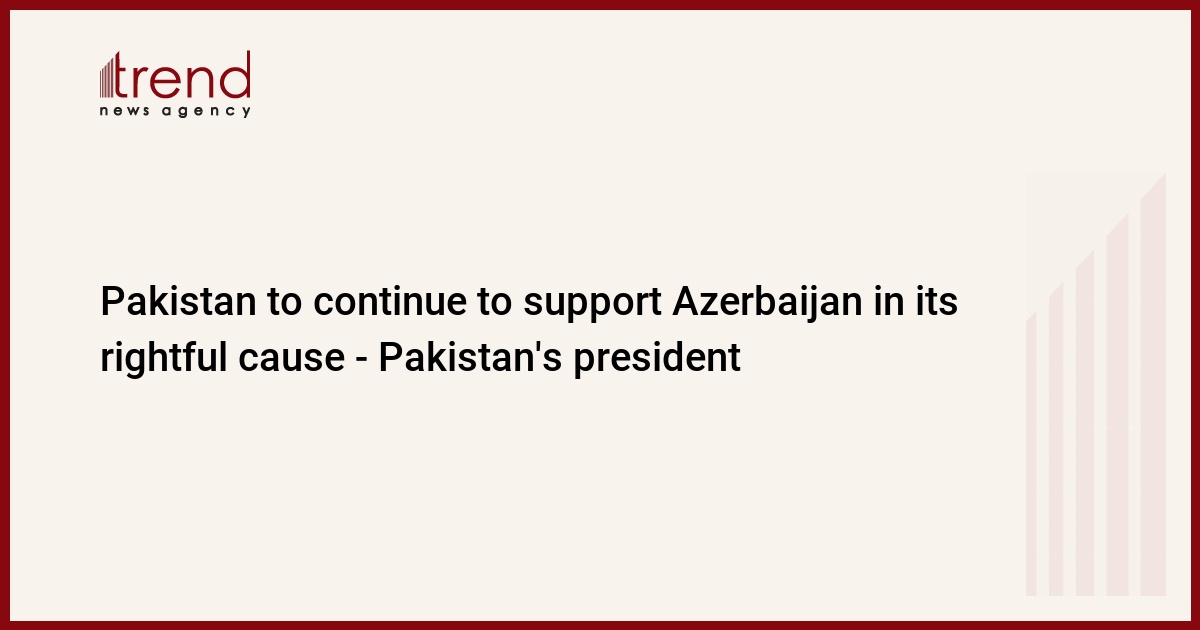 Pakistan has always supported and will continue to support Azerbaijan in its rightful cause, Pakistani President Arif Alvi said, Trend reports.