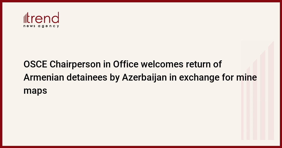 OSCE Chairperson in Office, Swedish Minister for Foreign Affairs Ann Linde welcomed the return of 15 Armenian detainees by Azerbaijan back to Armenia in exchange for mine maps of the liberated Aghdam district, Trend reports citing Linde's Twitter.