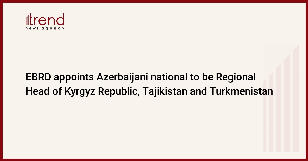 Ayten Rustamova has been appointed Regional Head of the Kyrgyz Republic, Tajikistan and Turkmenistan for the European Bank for Reconstruction and Development (EBRD), Trend reports citing EBRD.