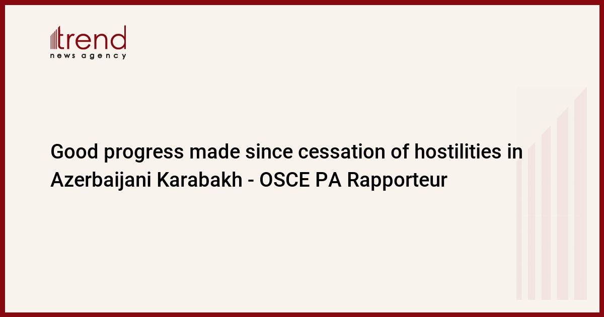Good progress has been made since the cessation of hostilities in Azerbaijani Karabakh, OSCE PA Rapporteur Laurynas Kasciunas (Lithuania) said presenting his report for The General Committee On Political Affairs And Security, Trend reports.