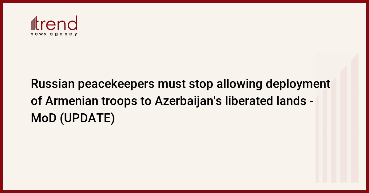 The peacekeeping forces of Russia must put an end to the cases of deployment of the Armed Forces of Armenia in the territories of Azerbaijan, previously liberated from Armenian occupation, Trend reports citing the press statement of Azerbaijani Ministry of Defense.