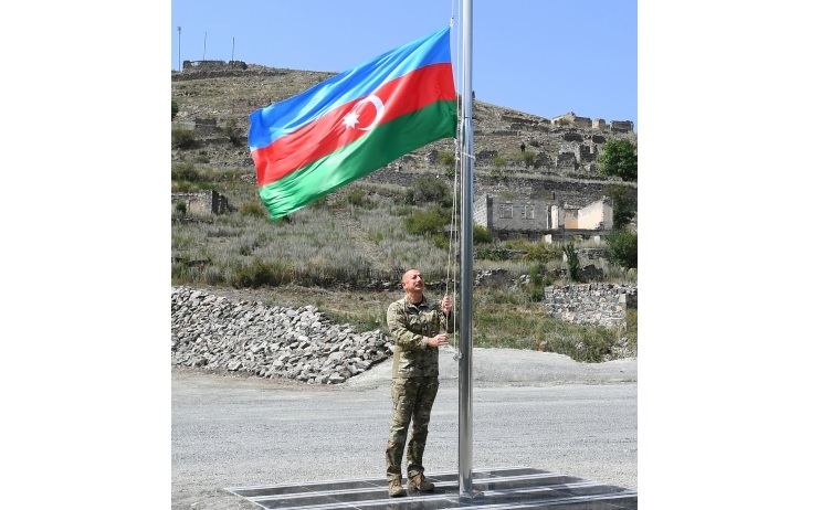 President Ilham Aliyev raised the state flag in the city of Kalbajar and made a speech here.