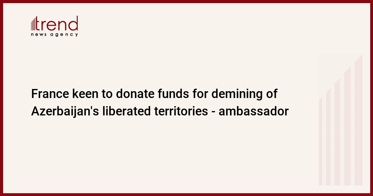 France is keen to donate 400,000 euros to support demining in Azerbaijan's territories liberated from Armenian occupation, France's Ambassador in Azerbaijan Zacharie Gross wrote on Twitter, Trend reports.