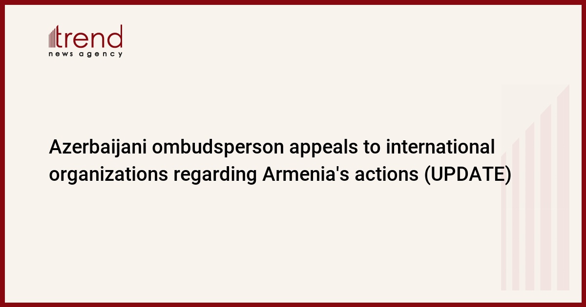 Human Rights Commissioner (Ombudsperson) of Azerbaijan Sabina Aliyeva appealed to international organizations in connection with the actions of Armenia, undermining peace and stability in the region, Trend reports on Sept.21 citing the Ombudsman's Office.