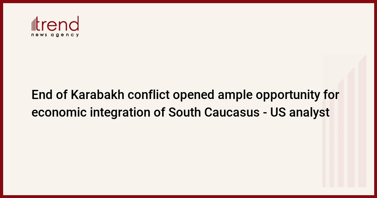 With the ending of the Karabakh conflict, there is ample opportunity for economic integration of South Caucasus, as well as many opportunities towards working for joint goals with the European Union and other countries, Irina Tsukerman, the US-based expert and analyst told Trend.