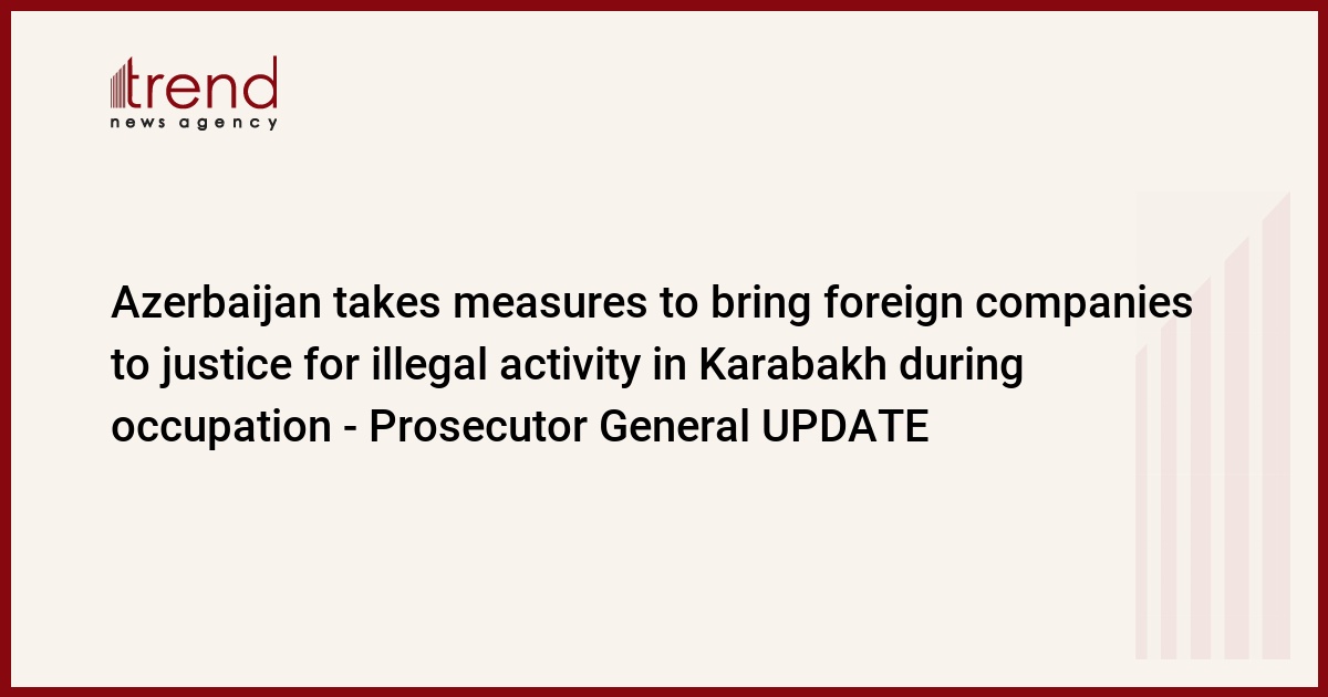 Operational and investigative measures are being taken to bring to justice foreign companies engaged in illegal business in Karabakh during the occupation, Prosecutor General of Azerbaijan, Kamran Aliyev said in an article published in the “Azerbaijan” newspaper, Trend reports.