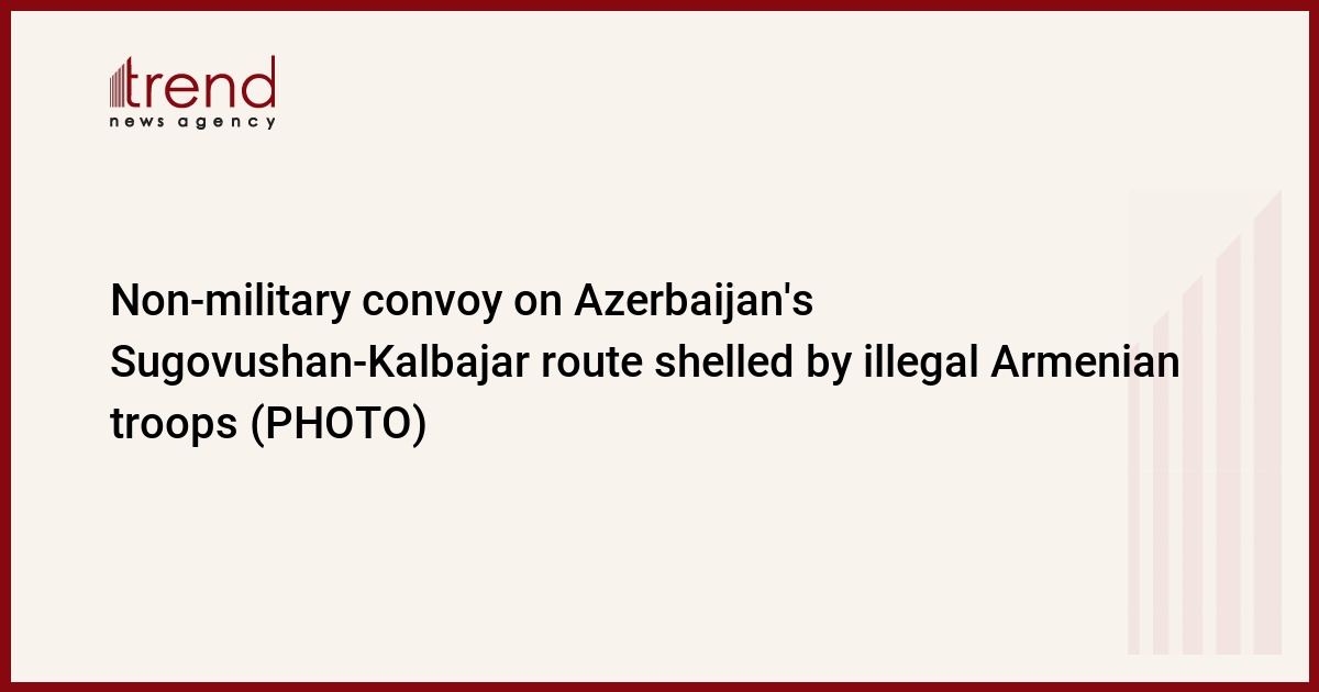 A convoy of vehicles moving from the Sugovushan settlement of the Tartar region towards the Kalbajar region in Azerbaijan with the aim of delivering non-military goods for the construction of infrastructure in the Kalbajar territory came under fire from illegal Armenian armed formations near the Gozlukerpu settlement at about 14:00 (GMT+4) on October 13, Trend reports citing Azerbaijani Defense Ministry.