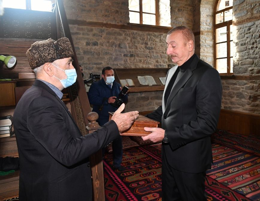 resident Ilham Aliyev and First Lady Mehriban Aliyeva then viewed the restoration and repair work carried out at Badoyun Mosque in Lahij.