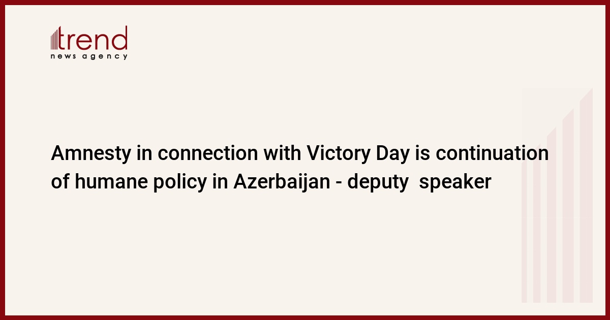 The amnesty in connection with November 8, Victory Day [commemorating the liberation of Azerbaijani territories from Armenian occupation in the 2020 Second Karabakh War], is a continuation of the humane policy pursued in Azerbaijan, First Deputy Speaker of the Azerbaijani Parliament (Milli Mejlis) Ali Huseynli said, informing about the issue of amnesty at the plenary session of the Milli Mejlis on Nov. 5, Trend reports.