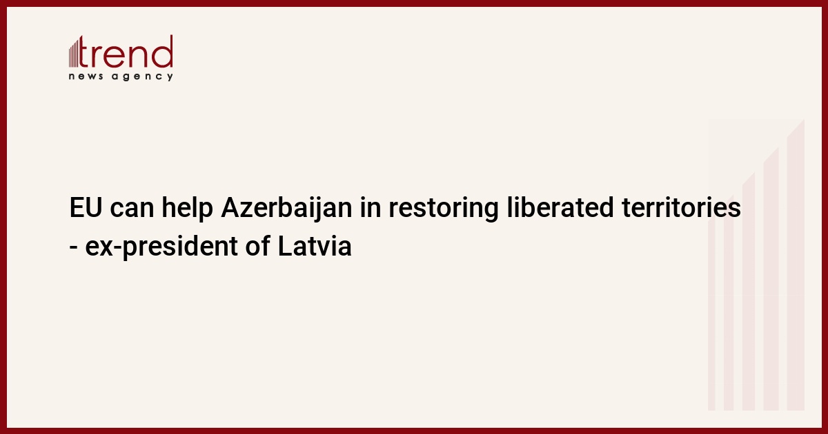 The EU can help Azerbaijan in restoring its territories liberated from Armenian occupation [in the 2020 Second Karabakh War], Valdis Zatlers, ex-president of Latvia, said during the panel session on topic "Eastern Partnership: What Is Potential?" as part of the VIII Global Baku Forum under the motto "The World after COVID-19", Trend reports.