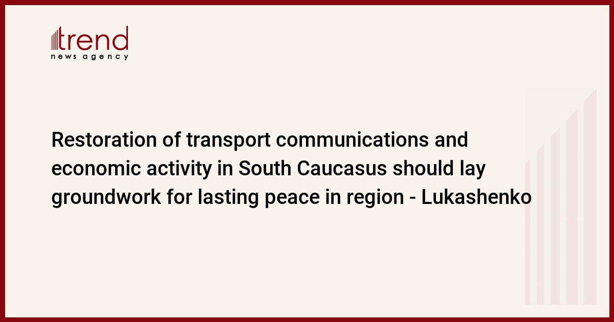 The restoration of transport communications and economic activity in the South Caucasus should lay the groundwork for a lasting peace in the region, President of Belarus Alexander Lukashenko said during the call with President of the Republic of Azerbaijan Ilham Aliyev, Trend reports.