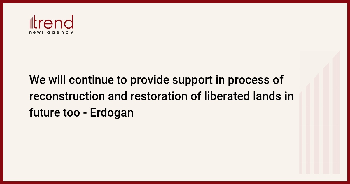 I am delighted with the rapid improvement of Karabakh and Eastern Zangazur and the elimination of the consequences of occupation in a short time. We will continue to provide support in the process of reconstruction and restoration of the liberated lands in the future too, Turkish President Recep Tayyip Erdogan said in a congratulatory letter to President of the Republic of Azerbaijan Ilham Aliyev, Trend reports.