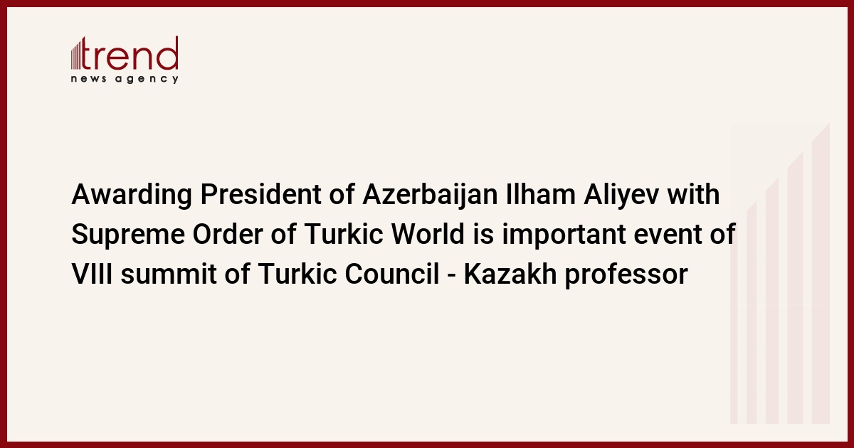 Awarding the Supreme Order of the Turkic World to President of Azerbaijan Ilham Aliyev is an important event of the VIII Summit of the Turkic Council, Associate Professor of the Scientific and Educational Department of International Relations and Management at Narxoz University of Almaty (Kazakhstan) Saken Mukan told Trend.