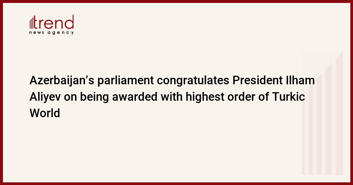 Deputies of the Milli Mejlis (parliament) congratulated President of Azerbaijan Ilham Aliyev on being awarded the highest order of the Turkic world, Trend reports on Nov. 16.
