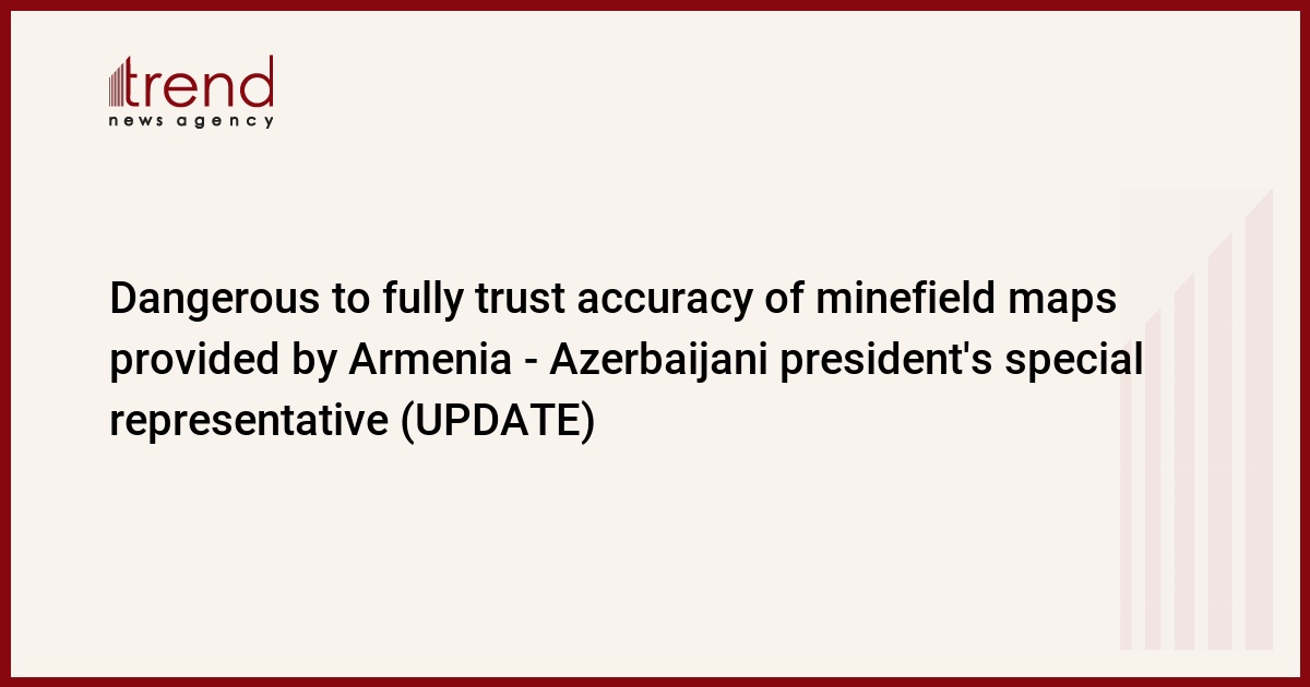 It is dangerous to fully trust the accuracy of the minefield maps provided to Azerbaijan by Armenia, Emin Huseynov, the special representative of the President of Azerbaijan in the liberated territories [which were liberated from Armenian occupation during the 2020 second Karabakh war] within the Karabakh economic region, said in an interview with Xalq gazeti newspaper, Trend reports on Dec. 9.