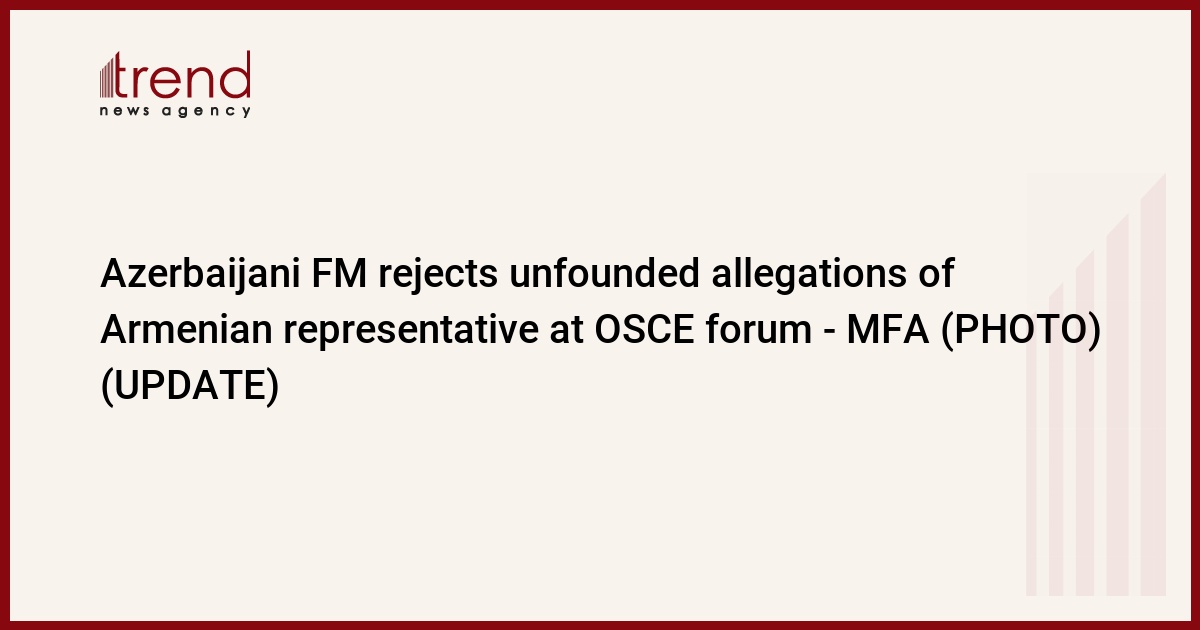 Minister of Foreign Affairs of the Republic of Azerbaijan Jeyhun Bayramov rejected the unfounded allegations of the Armenian representative at the OSCE forum, Azerbaijan's Ministry of Foreign Affairs said, Trend reports.