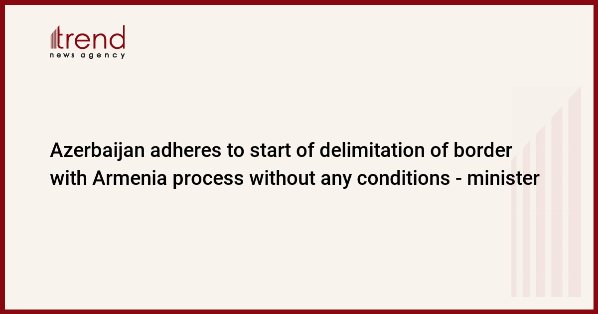 Azerbaijan adheres to the start of the delimitation process of border with Armenia without any conditions, Azerbaijani Foreign Minister Jeyhun Bayramov said during a meeting with OSCE Secretary General Helga Schmidt during his visit to Vienna on Wednesday, Trend reports citing Azerbaijani Foreign Ministry.