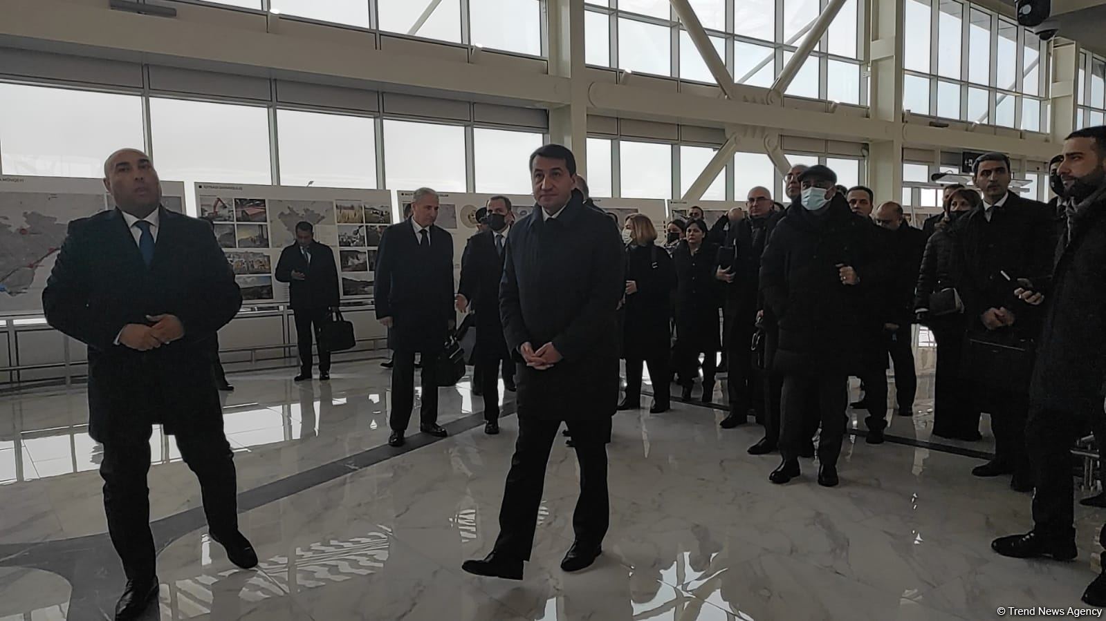The participants of the meeting have already arrived by plane at the Fuzuli International Airport. After viewing the airport, they will go to Shusha along the "Victory Road".