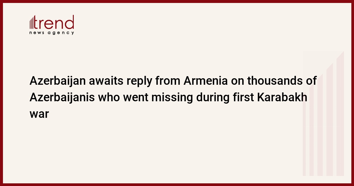 BAKU, Azerbaijan, March 29. Azerbaijan still waiting for the answer from Armenia concerning the fate of nearly 4,000 Azerbaijanis who went missing during the first Karabakh war, Speaker of the Azerbaijani Parliament Sahiba Gafarova said at a meeting of the Interparliamentary Assembly of Member Nations of the Commonwealth of Independent States (IPA CIS) dedicated to the IPA’s 30th anniversary, in Kazakhstan’s Almaty, Trend reports.
