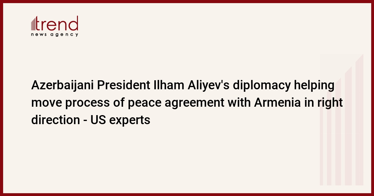 The US analyst Irina Tsukerman commenting on the issue said that Azerbaijani President Ilham Aliyev's diplomacy is helping move process of peace agreement with Armenia in the right direction.