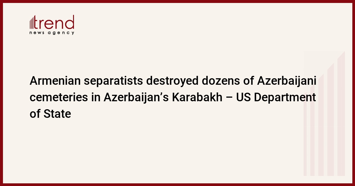 BAKU, Azerbaijan, April 14. Dozens of Azerbaijani cemeteries were destroyed in Azerbaijan’s Fuzuli, Aghdam, Zangilan, Kalbajar, and Jabrayil by Armenian separatists, while the Armenian ones remained untouched, a report prepared by the US Department of State said, Trend reports.